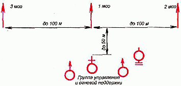 Рис. 1. Предбоевой порядок мотострелкового взвода, наступающего в пешем порядке (вариант)
