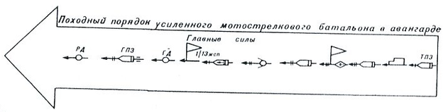 Приданные мотострелковому взводу средства усиления, не вошедшие в элементы боевого порядка, следуют за группой управления и огневой поддержки или в указанном командиром взвода месте.