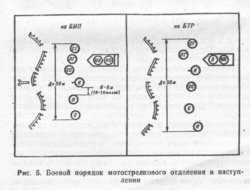 Боевой порядок отделения состоит из цепи и боевой машины: