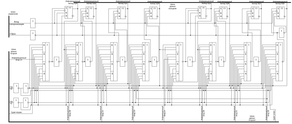 Функциональная схема 8-разрядного универсального регистра на логических элементах