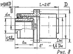 Размеры стандартных муфт (см. табл. к рис. 6…9) выбирают из условий: прочности (крутящий момент Тм муфты д. б. не менее наибольшего момента на соединяемых валах – Тmax = Кп.Т1(2) Тм), быстроходности (nм n1(2)), собираемости (д.б. равенство посадочных диаметров dм концов валов и отверстий полумуфт; при соединении концов валов разного диаметра (м.б. dэ ≠ dм1) выбирают муфту с соответствующим диапазоном dм) и соразмерности (габариты муфты д.б. меньше, чем у редуктора).