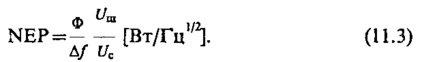 4. Эквивалентная мощность шума NEP*—та величина светового потока, которая на выходе фотоприемника в единичной полосе частот вызывает сигнал, равный шуму,