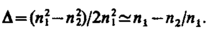 Параметр ∆ называется удельной разницей показателей преломления и определяется через показатели преломления волновода и оболочек