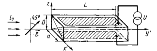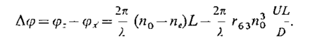 содержит слагаемое, не зависящее от приложенного напряжения U.Напряжение полуволнового смещения в модуляторе с поперечным полем может быть уменьшено в L/D раз. К сожалению, эти модуляторы обладают очень малой апертурой и работают лишь с параллельными пучками.