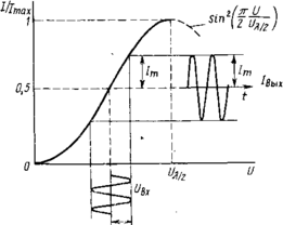 т. е. модуляция не линейна. Функция (10.24) представлена на рис. 10.4. Видно, что для осуществления эффективной модуляции рабочую точку надо сдвинуть на