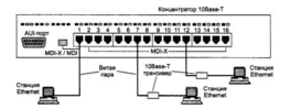 Рис. 4.6. Соединения типа «станция-концентратор» и «концентратор-концентратор» на витой паре