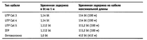 Таблица 3.10. Задержки, вносимые кабелем