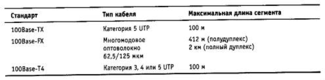 Спецификация IEEE 802.3u определяет следующие максимальные длины сегментов DTE-DTE, приведенные в табл. 3.8.