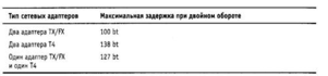 Таблица 3.11. Задержки, вносимые сетевыми адаптерами