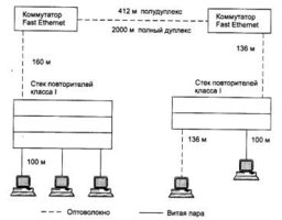 Таким образом, правило 4-х хабов превратилось для технологии Fast Ethernet в правило одного или двух хабов, в зависимости от класса хаба.