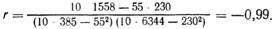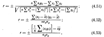 Несмотря на громоздкость формулы (4.51) , она наиболее простая для вычислений. Значение коэффициента корреляции всегда меньше единицы. При г = 1,0 величины х и у связаны функциональной связью (в данном случае линейной), т. е. каждому значению х соответствует одно значение у. Если г < 1, то линейной связи не существует. При г = 0 между х и у линейной корреляционной связи не существует, однако может существовать нелинейная регрессия. Обычно считают тесноту связи удовлетворительной при г >0,5 хорошей при г = 0,8—0,85.