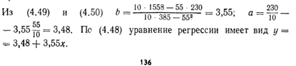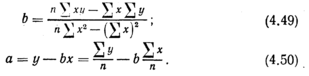 Уравнение регрессии прямой можно представить выражением (4.48) или