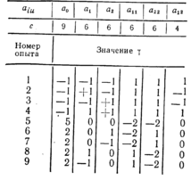 2. Проверяют применяемость линейного полинома: ур = a0+ + а1x1+ a2x2+ a12x12. Для ведения эксперимента применяют план, приведенный на рис. 4.13, составляют рабочую таблицу планирования и в соответствии с ней проверяют эксперимент, результаты которого записывают в табл. 4.24.