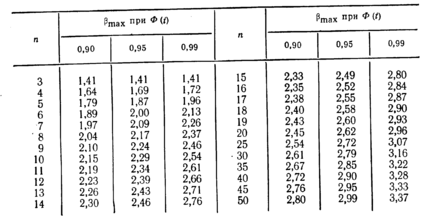 В табл.4.3 приведены в зависимости от доверительной вероятности максимальные значения