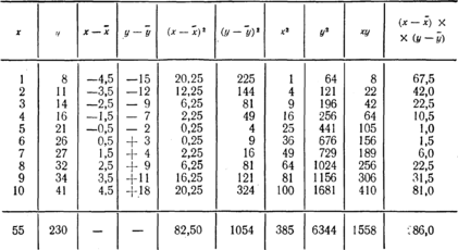 Коэффициент регрессии по (4.54) г -----у = 0,99 —----^ = 3,54. Уравнение регрессии у = 23 + 3,54 (х — 5,5). Определим уравнение регрессии иным способом.