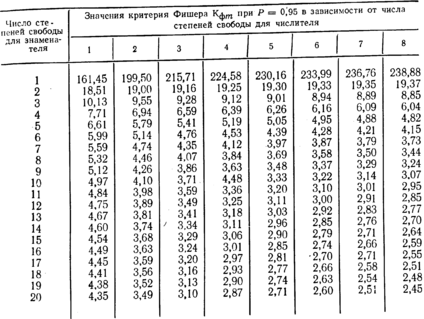 Кфm—табличное значение критерия согласия, принимаемое при числе степеней свободы q и доверительной вероятности р = 0,95