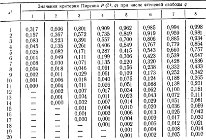 равным 0,01; y2 — критерий согласия Пирсона; q — число степеней свободы, равное