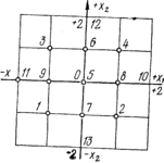 мента составляют план (рис. 4.13) и матрицу (табл. 4.16) двухфакторного эксперимента, в соответствии с которыми и проводят исследования.