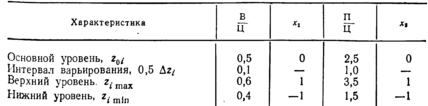 2. Устанавливают пределы измерений выбранных факторов Ztmin и Zirnax, вычисляют основной уровень Z0i и интервал варьирования Аzi;, заменяют переменные Zi на кодированные Xi.