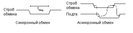 при синхронном обмене процессор заканчивает обмен данными самостоятельно, через раз и навсегда установленный временной интервал выдержки tвыд), то есть без учета интересов устройства-исполнителя;
