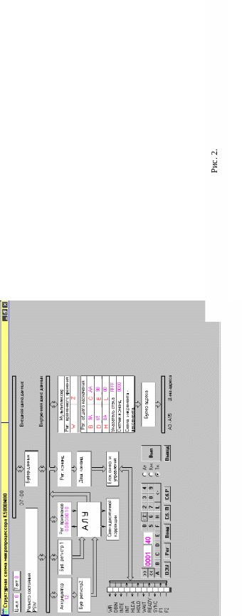 При указании “мышью” позиции “структурная схема” раскрывается следующее окно, в котором показана структурная схема процессора (рис.2).