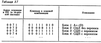 табл. 3.7 приведена соответствующая схеме алгоритма на рис.3.9 программа с представлением команд в кодовых комбинациях.