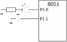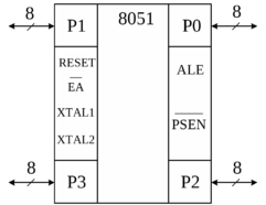 По сигналу сброс в регистры защёлки всех портов записываются единицы, настраивая их тем самым на ввод. Все выводы портов Р1, Р2, Р3 независимо друг от друга можно использовать как входы или выходы. Для использования вывода в качестве входа необходимо предварительно установить этот разряд в единичное состояние. Благодаря этой особенности порты Р1, Р2 и Р3 иногда называют квазидвунаправленными. Порт Р0 является двунаправленным портом, имеющим третье (высокоимпедансное) состояние. Его выводы также можно независимо настроить на ввод или вывод.