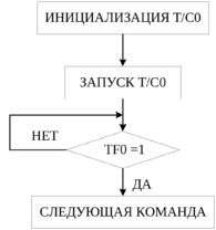 Организовать временную задержку на 100 микросекунд, используя таймер/счетчик ноль. Структурная схема программы на рис.2.11.
