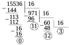 Проверим: 3CB0 = 3 ∙ 4096 + 12 ∙ 256 + 11 ∙ 16 + 0 ∙ 1 = 15536.