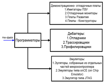 Программаторы предназначены для переноса hex- файла, полученного в результате компиляции и компоновки и проверенного в процессе симуляции, непосредственно в память программ микроконтроллера.