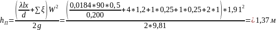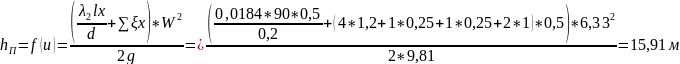 | υ, м3/с | W | Re | λ | hП, м | HC, м | Н, м |