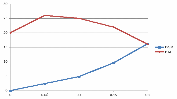 | Напор Н, м | 20 | 26 | 25 | 22 | 16 |