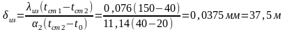 Пренебрегая кривизной стенки барабана, расчет толщины слоя изоляции производим по формуле: