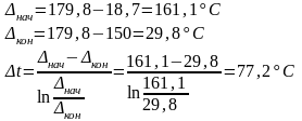 Найдем температуру конденсации греющего пара заданного давления: t п = 179,8 °C.