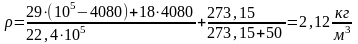 Вычислим плотность воздуха при средней температуре в сушильном барабане: