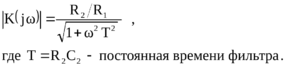 Активный фильтр нижних частот. Комплексный коэффициент активного фильтра 1-го порядка (рис.1,а) определяется выражением: