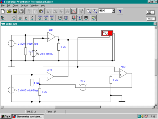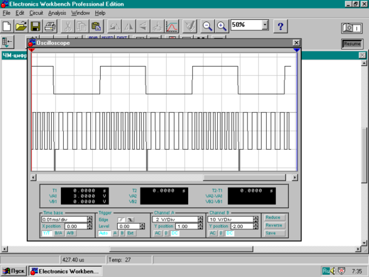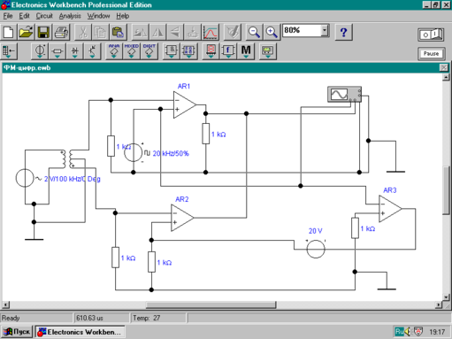 Проведем анализ схем частотной и фазовой модуляции с помощью пакета программ «Electronics Workbench».