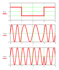3.Измените в схеме рис.4 амплитуду и частоту сигналов модуляции и несущей и установите их влияние на осциллограмму фазо-модулированного сигнала (рис.5).