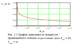 График зависимости мощности принимаемого сигнала от расстояния показан на рис.1.1.