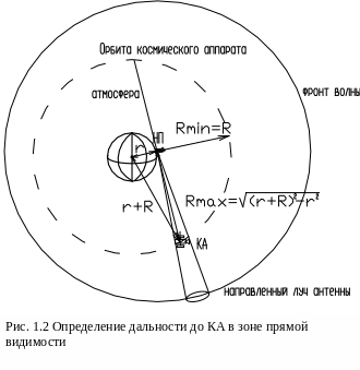 Рассчитать динамический диапазон сигнала при связи из наземного пункта с космическим аппаратом в зоне прямой видимости (рис.1.2) на круговой орбите с высотой R (табл.1.1). Потерями в атмосфере пренебречь.