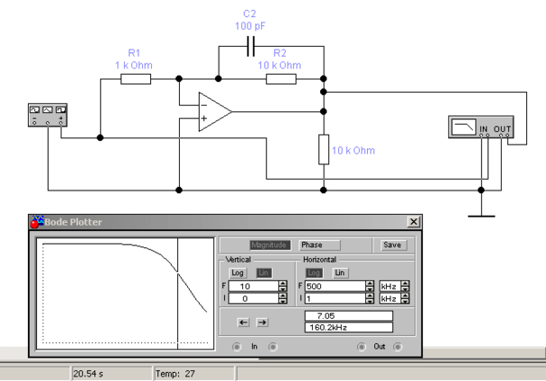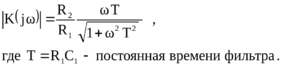 Согласно (3) схема, приведенная на рис.2, есть фильтр нижних частот. При параметрах элементов, приведенных на рис.2, постоянная времени фильтра