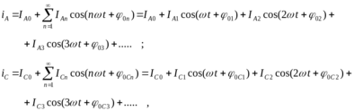 Периодический характер токов позволяет представить их рядом Фурье, то есть в виде суммы постоянной и гармонических составляющих: