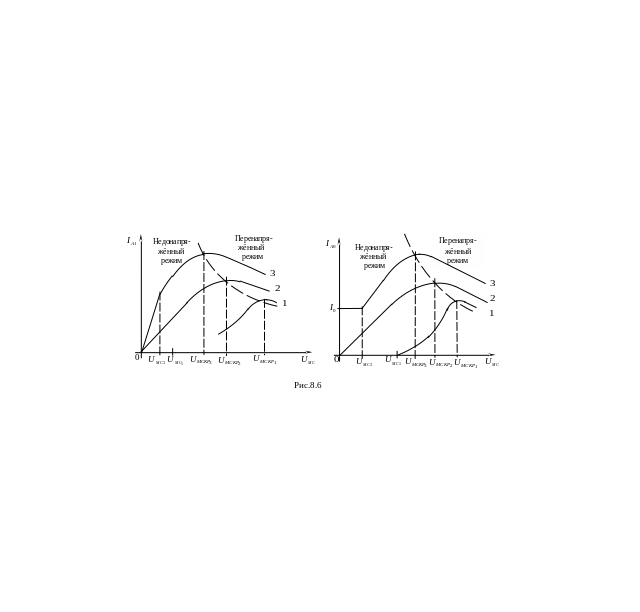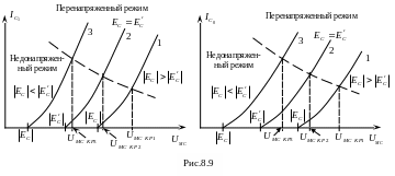 , но имеют меньшую крутизну, и возрастают при заходе транзистора в режим насыщения (перенапряжённый режим работы генератора). Эти зависимости представлены на рис.8.10.