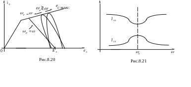 При расстройке контура относительно частоты выделяемой гармоники выходного тока АЭ модуль его сопротивления уменьшается и возрастает фазовый угол. ДХ выходного тока в процессе настройки генератора (настройки контура на частоту выделяемой гармоники) будут изменяться, как показано на рис.8.20.