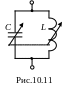 Схема контура представлена на рис.10.11. Одновременная перестройка контура ёмкостью и индуктивностью позволяет существенно увеличить коэффициент перекрытия контура по частоте, равный в данном случае