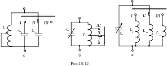 . В схемах (рис.10.12,б,в) переход от поддиапазона к поддиапазону осуществляется переключением индуктивности контура. На всех схемах показан включенным второй поддиапазон (II).