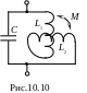Схема контура показана на рис.10.10, где М - коэффициент взаимной индукции (взаимная индуктивность) катушек.