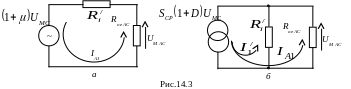 Выражению (14.7) соответствует эквивалентная схема выходной цепи генератора с ОС в недонапряжённом режиме работы, вплоть до критического режима, представленная на рис.14.3,а, которая может быть преобразована в схему с эквивалентным генератором тока (рис.14.3,б).