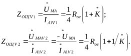 Если одна из ламп не работает (k = 0 или k = ∞), то другая лампа ощущает чисто активное сопротивление, равное (1/4)Roe, что соответствует эквивалентному сопротивлению контура относительно точек подключения с коэффициентом р = 1/2.