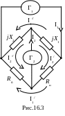 Схема рис.16.3 является одним из вариантов классической мостовой схемы: конфигурация её напоминает квадрат (или ромб), по сторонам которого включены сопротивления, а в диагонали включены генераторы.